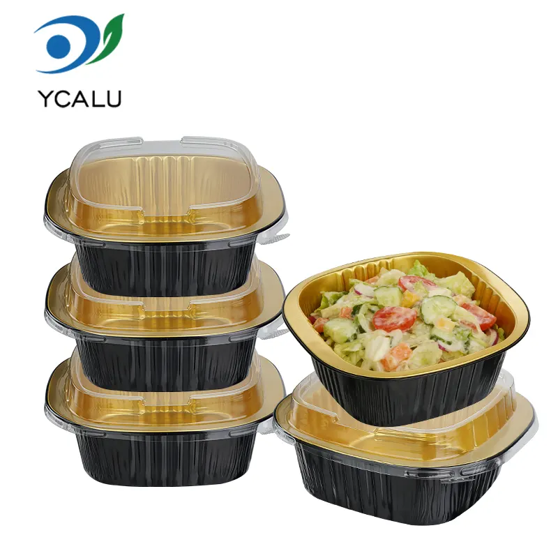 ظروف فویل آلومینیومی یکبارمصرف جعبه دو گوش مربعی طلای سیاه و سفید تامین کننده فویل آلومینیومی Yunchu از فویل آلیاژ آلومینیوم 8011 درجه مواد غذایی ساخته شده است. آنها با فرآیندهای بازپخت و استریل کردن در دمای بالا درمان شده اند تا یک لایه اکسید متراکم روی سطح تشکیل دهند. آنها فلزات سنگین و بو ندارند. آنها می توانند به طور مستقیم با انواع مواد غذایی در تماس باشند و از رسوب مواد مضر در دمای بالا جلوگیری کنند. چه از آنها برای نگهداری ظروف گرم، چه غذاهای سرد، دسرها یا سس ها استفاده شود، می توانند از ایمنی مواد غذایی محافظت کنند و با چندین گواهینامه ایمنی مانند FDA و SGS مطابقت داشته باشند و هر لقمه ای را ایمن تر کنند. طراحی منحصر به فرد دیوار لایت طلای سیاه، بافت یکنواخت ظروف فویل آلومینیومی سنتی را می شکند. پوشش طلای مشکی مات و سطح دیوار صاف حسی عالی را به ارمغان می آورد. نه تنها ظاهر برجسته ای دارد، بلکه می تواند به طور موثر نور و اکسیژن را مسدود کند، اکسیداسیون غذا را به تاخیر بیندازد، عطر و رطوبت غذا را محکم ببندد، از انتقال بو جلوگیری کند و طعم اصلی غذا را برای مدت طولانی حفظ کند. سطح صاف دیوار هیچ شیار یا چین و چروکی ندارد، بنابراین احتمال تولید باکتری کمتر است و به راحتی تمیز می شود. همچنین می‌تواند بهتر با سفارشی‌سازی چاپ سازگار شود و به برندهای کیترینگ کمک کند تا شناخت و کیفیت خود را افزایش دهند.