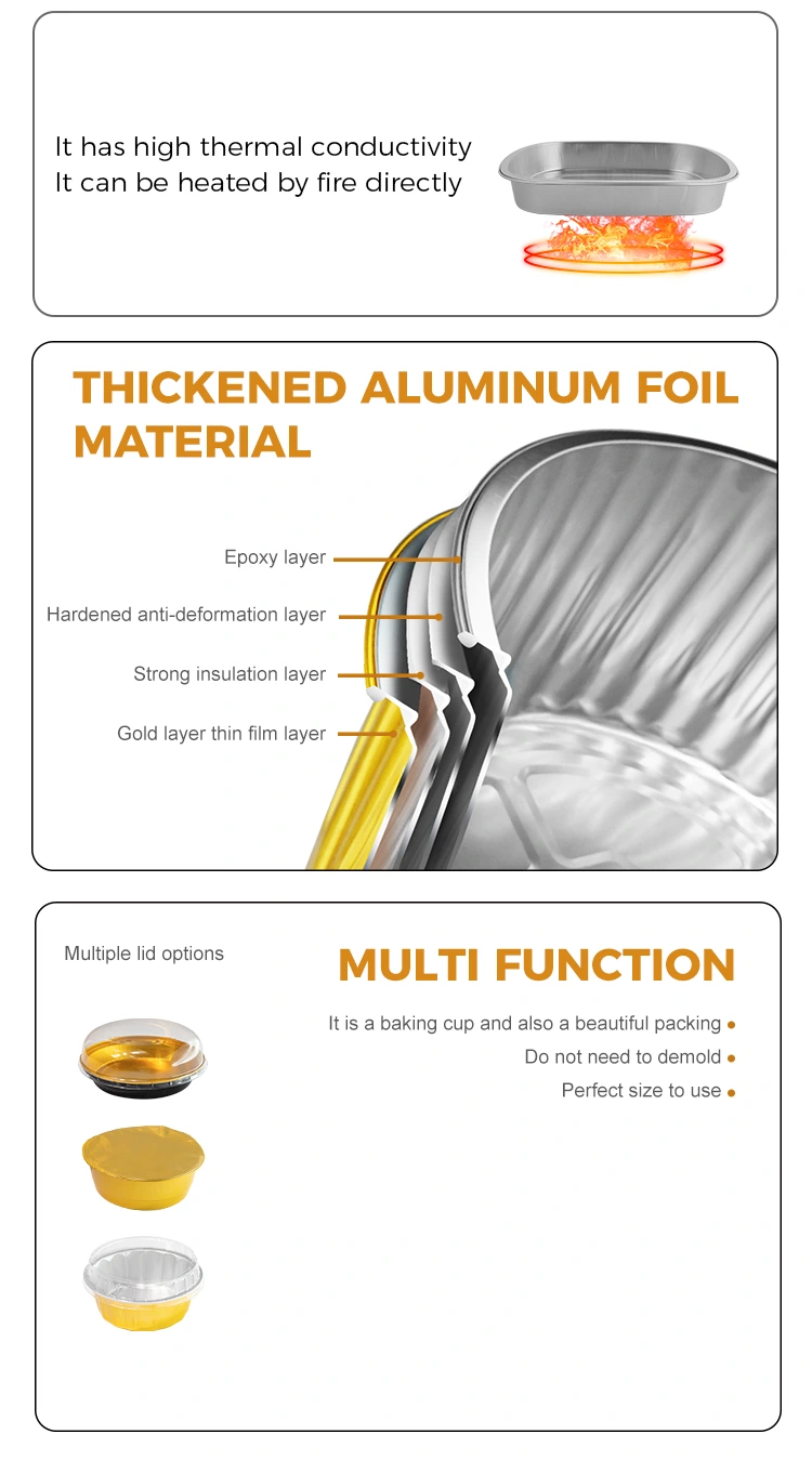 این بسته بندی عالی برای تارت تخم مرغ، براونی، کاپ کیک، تک تک برش های پیتزا یا شیرینی های پوسته پوسته است. خاصیت عایق بودن فویل آلومینیومی به حفظ گرما و بافت نرم شیرینی ها بلافاصله پس از پخت کمک می کند. طعم را کاملا حفظ می کند و برای بیرون آوردن از نانوایی ها و کافه ها مناسب است.