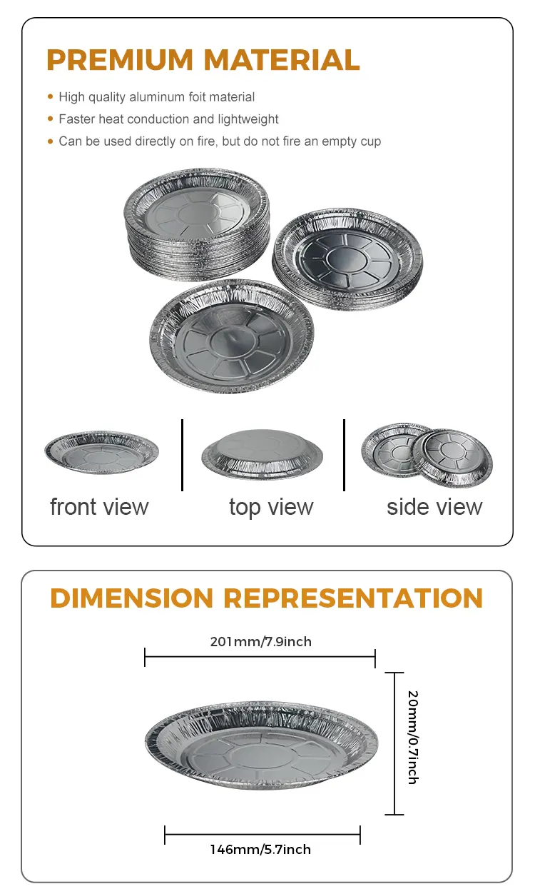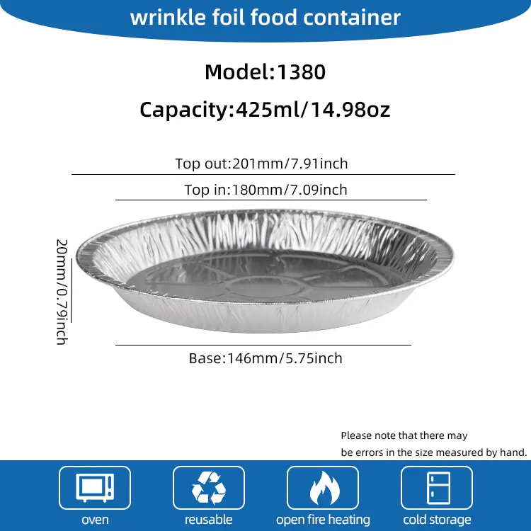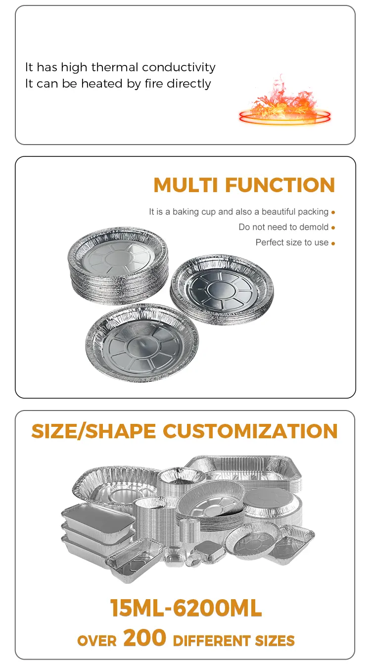کانتینر فویل آلومینیومی یکبار مصرف دیسکی یونچو ظرف فویل آلومینیومی بهداشتی و سازگار با محیط زیست است. از مواد ضخیم و مقاوم در برابر خوردگی ساخته شده است که به راحتی تغییر شکل نمی دهند و می توانند مستقیماً با مواد غذایی در تماس باشند. از درجه حرارت بالا نمی ترسد، نمی سوزد، نمی سوزد و تخلیه نمی شود. دمای بالا تا 250 درجه سانتی گراد را تحمل می کند و برای انواع روش های پخت مانند پخت با دمای بالا، فر و باربیکیو مناسب است، بنابراین جای نگرانی نیست. مشخصات متعددی برای رفع نیازهای متنوع پخت در اندازه های مختلف موجود است که به شما امکان می دهد به راحتی با نیازهای مختلف تولید مواد غذایی کنار بیایید.