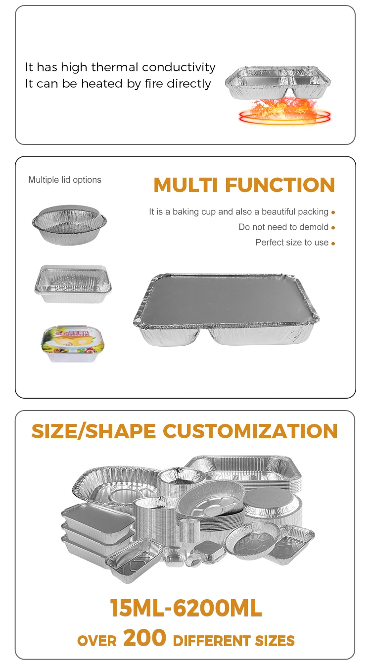 این جعبه ناهار فویل آلومینیومی نه تنها دارای خواص عایق حرارتی است ، بلکه می تواند با یک درب فویل آلومینیومی نیز جفت شود و باعث افزایش بیشتر کارآیی محصول می شود. علاوه بر این ، ما همچنین خدمات آرم سفارشی را برای تقویت تصویر برند و بهبود نقاط حافظه مشتری ارائه می دهیم.