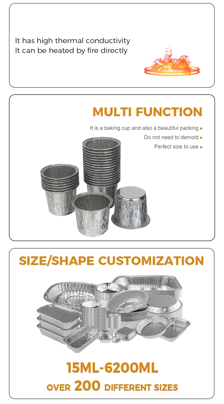 تگ های داغ: ظروف غذای فنجان کیک گرد یکبار مصرف ظروف فویل آلومینیومی نقره ای
