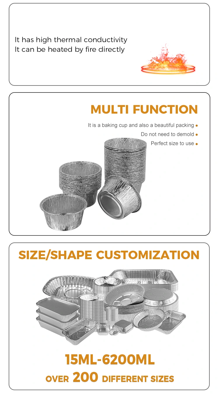 تولید کننده فویل آلومینیومی Yunchu سینی کیک گرد یکبار مصرف ظروف فویل آلومینیومی نقره ای را راه اندازی کرده است که از طراحی فنجان پخت گرد استفاده می کند و دارای شیارهایی در پایین است که باعث پایداری و اثر ضد لغزش آن می شود. این ظرف نیازی به تمیز کردن ندارد و پس از استفاده می توان آن را دور انداخت که راحت و سریع است. گرما را به سرعت هدایت می کند، به راحتی نمی سوزد و به پایین می چسبد و به طراحی لبه مجهز است. از مواد ضخیم ساخته شده است که محکم و بادوام است، به راحتی آسیب نمی بیند، ضد روغن و ضد لک است و به راحتی قالب گیری می شود.