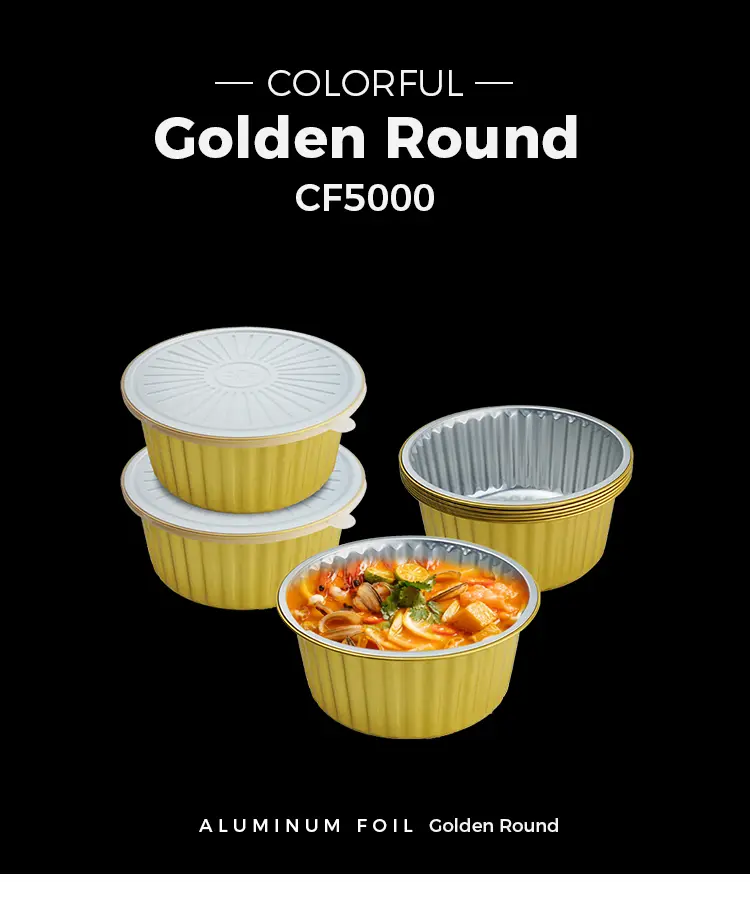 Yunchu Aluminum Foil Disposable Sealable Golden Round Aluminum Foil Containers Model CF5000 Supply Wholesale has a wide range of uses, can use the covered aluminum foil heat sealing lid for baking, storage, transportation, and supply of all kinds of assembly line food, etc., from pre-made dishes and cleaning all kinds of food to supplier food, this container is suitable for a variety of occasions, such as large supermarket فروشگاه ها ، مهمانی های تعطیل ، فعالیت های پذیرایی ، فروشگاه های پذیرایی سلف سرویس و غیره ، ظروف فویل آلومینیومی گرد و مهر و موم شده با مهر و موم یکبار مصرف ساخته شده از فویل آلومینیومی با کیفیت بالا 8011-0 ، سینی پخت یکبار مصرف با درب دوام ، به راحتی قابل سوراخ و آسیب دیده نیست. این ماده امکان توزیع یکنواخت گرما ، احتباس گرمای خوب ، بدون چسبندگی ، سوزاندن ، ضد آب و ضد روغن ، بدون نیاز به تمیز کردن ، بدون بار در لکه های روغن را فراهم می کند. لبه های صاف به دست شما آسیب نمی رسانند ، و اطمینان حاصل می کنند که ظروف از پیش آماده شده کاملاً پخته شده اند. تابه فویل به رنگ طلایی ظریف به پایان رسیده است که ارائه را تقویت می کند و آشپزخانه یا دکوراسیون شما را تکمیل می کند.