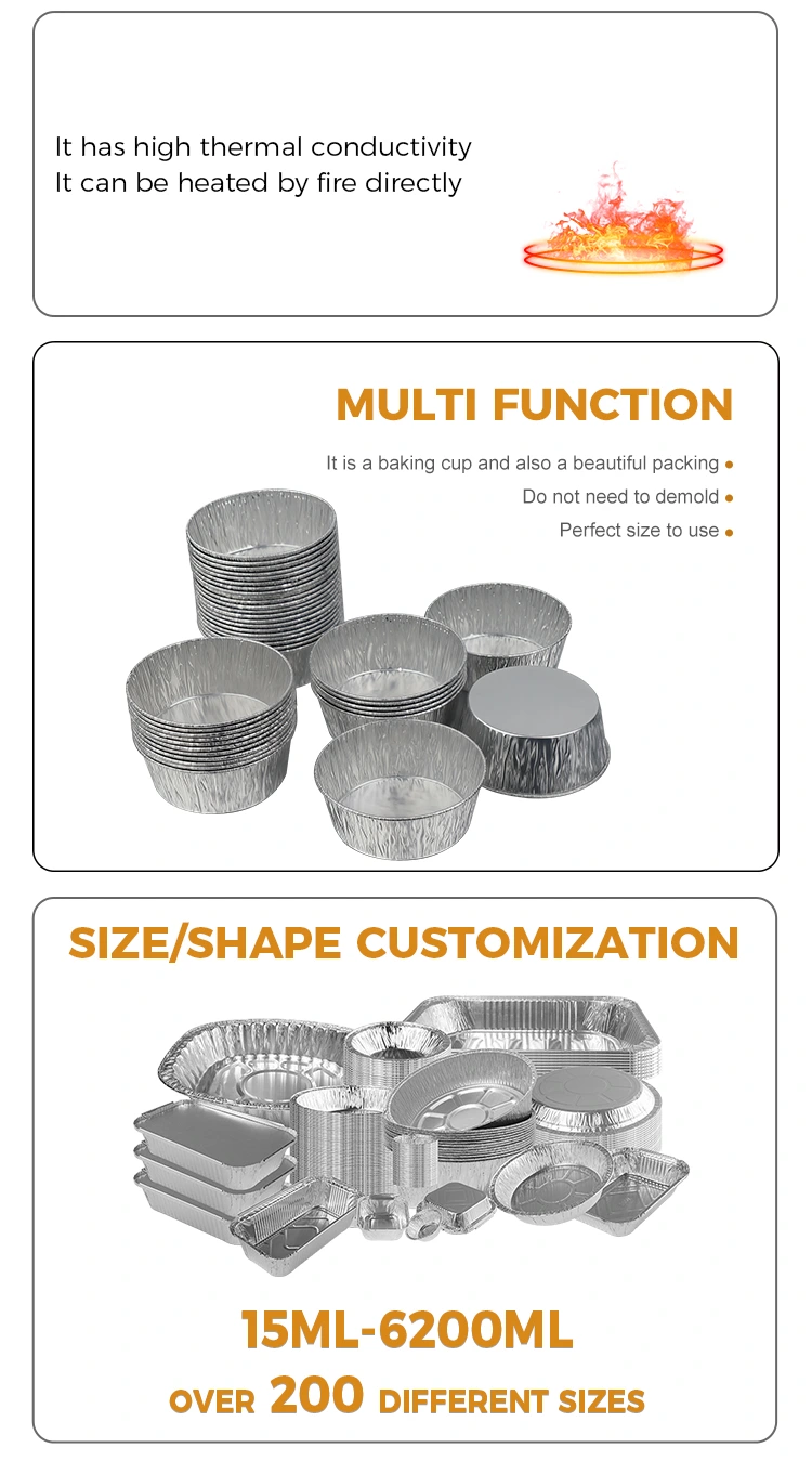 ظروف فویل آلومینیومی یکبار مصرف نقره ای یکبار مصرف عرضه کننده فویل آلومینیومی یونچو، ظرف فویل آلومینیومی یکبار مصرف طراحی شده است که به طور کامل کار طاقت فرسا شستن ظروف بعد از غذا را حذف می کند، در زمان و انرژی صرفه جویی می کند. مواد فویل آلومینیومی با در نظر گرفتن راحتی و مفاهیم سبز قابل بازیافت، سازگار با محیط زیست و بدون بار هستند. ظاهر کوچک و نفیس، فضای ذخیره سازی روی هم فضایی را اشغال نمی کند و به راحتی در فضای ذخیره سازی آشپزخانه صرفه جویی می کند. این ظرف یکبار مصرف فویل آلومینیومی گرد نقره ای چه در خانه و چه در مشاغل مورد استفاده قرار گیرد، می تواند مشکل نگهداری و استفاده از دیپ ها را با مواد مرغوب و طراحی مدبرانه حل کند و هر آشپزی و هر جمع آوری را بدون نگرانی و راحت تر کند.