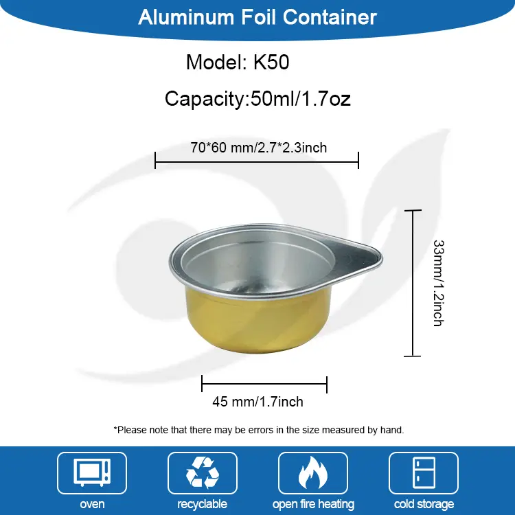 تأمین کننده فویل آلومینیومی Yunchu K50 مهر و موم حرارتی سیلیکون-بسته بدون کپسول قهوه خالی: 70*60 میلی متر ، 2.7*2.3 اینچ ، پایه: 45 میلی متر ، 1.7 اینچ ، قد: 33 میلی متر 1.2 اینچ ، می تواند 50 میلی لیتر مواد غذایی را نگه داشته باشد ، می تواند برای همه تولید کنندگان قهوه Nespresso (Nespresso) ، بسته بندی شده Rhidendo ، Packaged Espendo ، Packaged Espendo.