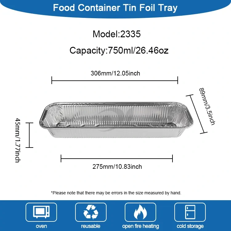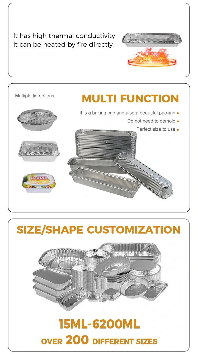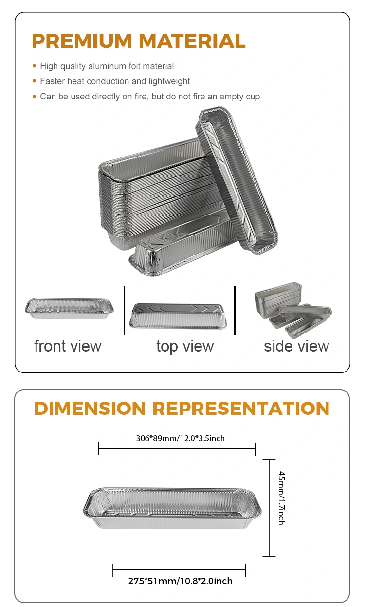 این سینی نان مستطیل که در حال پخت ظروف فویل آلومینیومی نقره ای است ، تحت آزمایش کیفیت دقیق قرار می گیرد تا اطمینان حاصل شود که هیچ ماده مضر در هنگام گرمایش شعله باز آزاد نمی شود و کاربران نیازی به نگرانی در مورد مشکلات ایمنی ندارند. علاوه بر این ، طراحی سازگار با محیط زیست و بادوام آن نه تنها حمل و نقل ایمن محصولات را تضمین می کند بلکه بهترین ظاهر را نیز حفظ می کند. طراحی مقعر و محدب در پایین خصوصیات ضد لغزش محصول را تقویت می کند ، در حالی که سفت کننده های اضافه شده در طرفین ، سختی محصول را افزایش می دهند. طراحی Hemming ضخیم و عمیق تر شده است ، با مقاومت در برابر دمای بالا و هدایت حرارتی ، که می تواند به گرمایش یکنواخت و بدون بوی عجیب و غریب دست یابد و آن را برای استفاده در چندین سناریو مانند کباب زغال چوب ، نان طولانی و تحویل غذای آماده بسیار مناسب می کند.