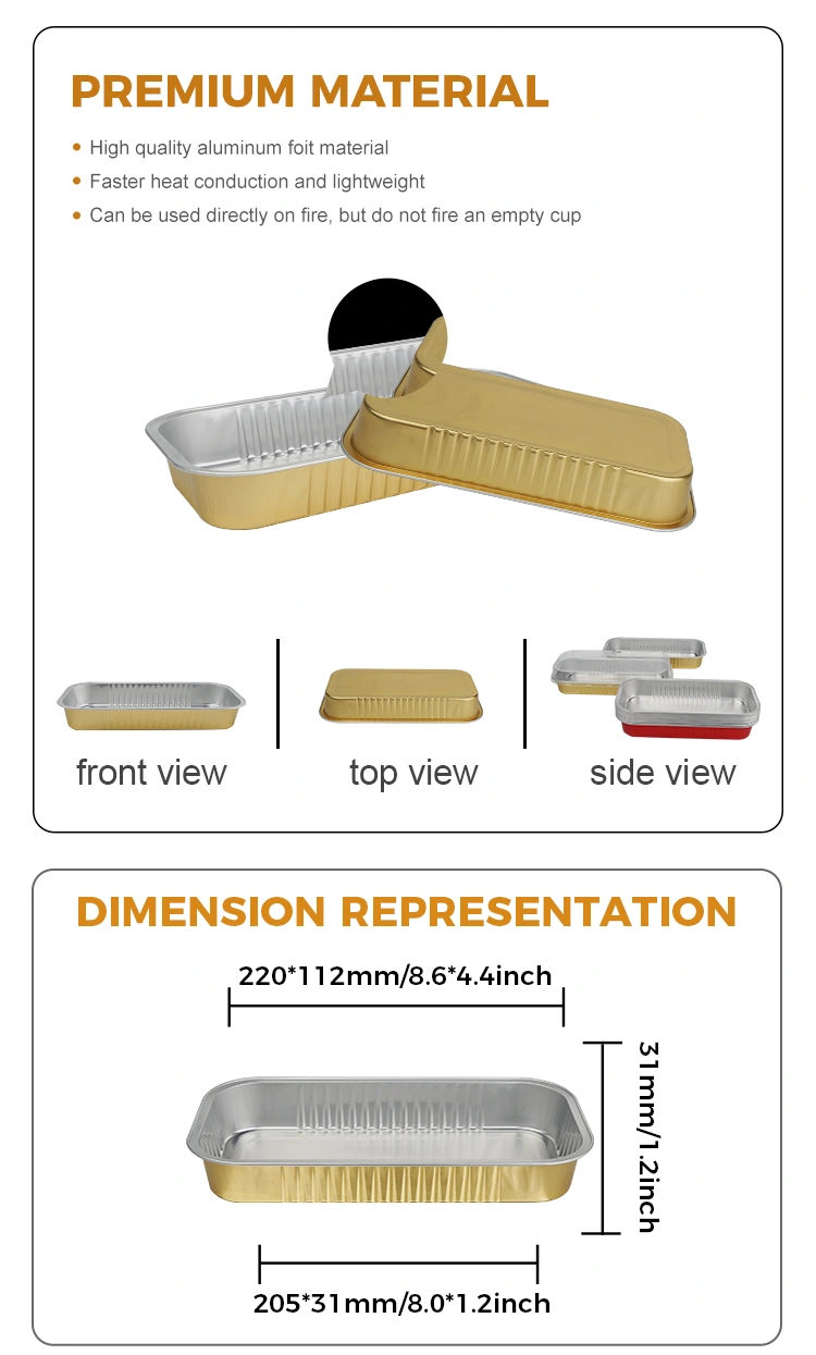 فویل آلومینیومی یونچو ظروف فویل آلومینیومی صاف و صاف مستطیلی طلایی را ارائه می دهد که نه تنها برای سناریوهای پخت مناسب هستند بلکه برای بیرون آوردن نیز مناسب هستند و همچنین می توانند در نگهداری روزانه به شما کمک کنند: